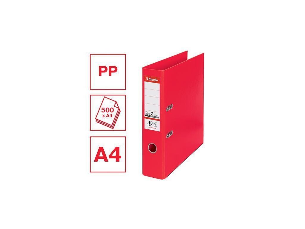 Pákový pořadač "Standard", ochranné spodní kování, Vivida červená, 75 mm, A4, PP, ESSELTE