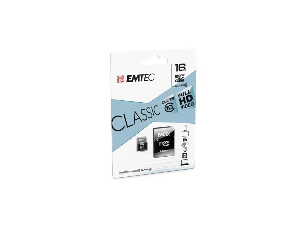 Paměťová karta "Classic", microSDHC, 16GB, CL10, 20/12 MB/s, adaptér, EMTEC ECMSDM16GHC10CG