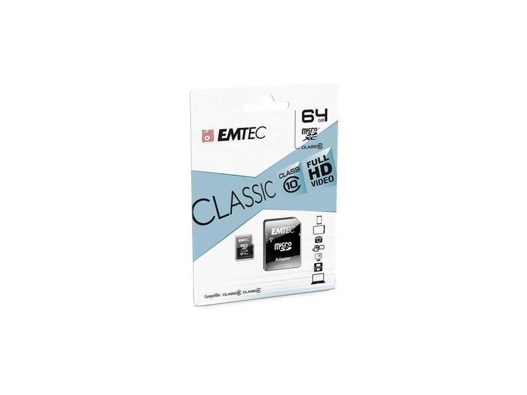 Paměťová karta "Classic", microSDXC, 64GB, CL10, 20/12 MB/s, adaptér, EMTEC ECMSDM64GXC10CG