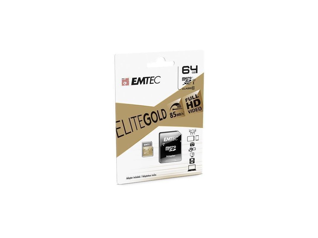 Paměťová karta "Elite Gold", microSDXC, 64GB, UHS-I/U1, 85/20 MB/s, adaptér, EMTEC ECMSDM64GXC10GP