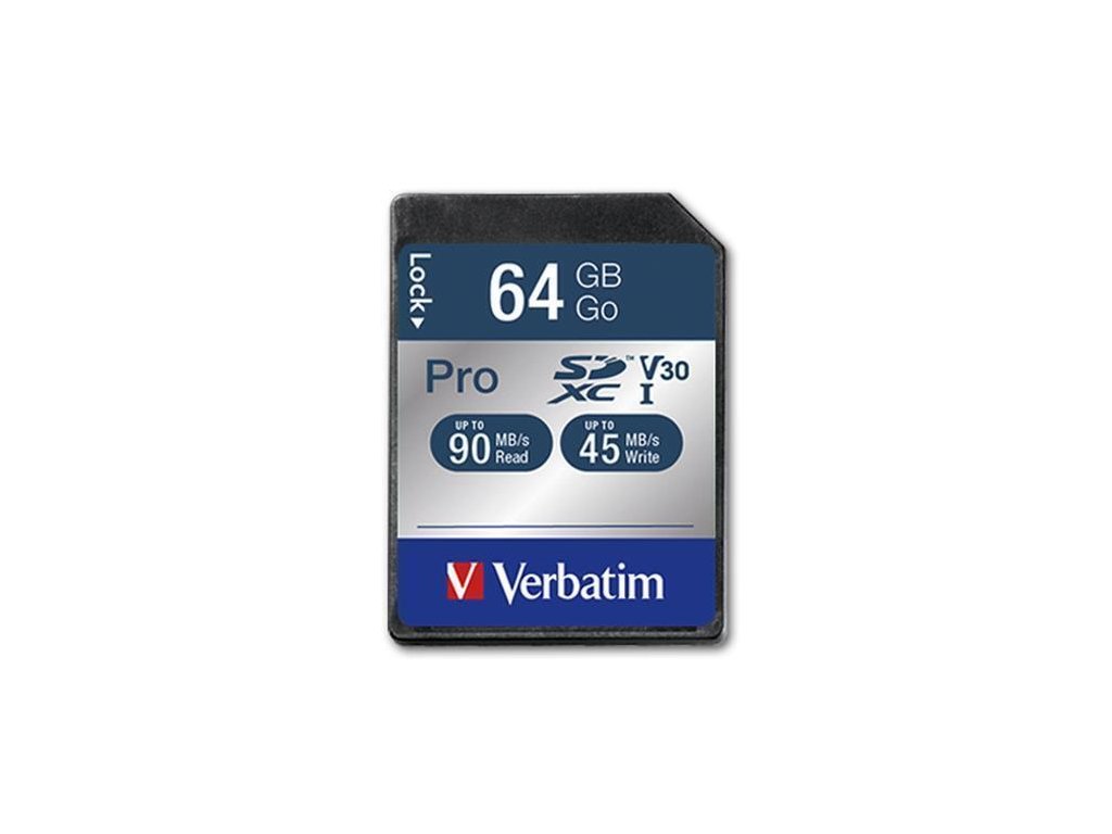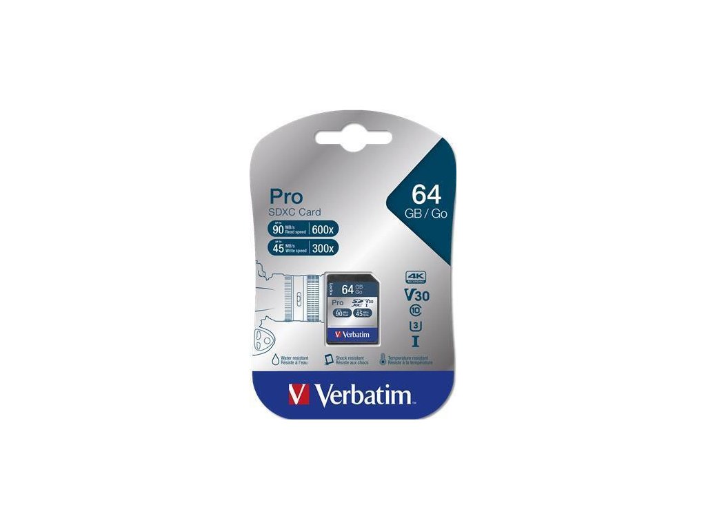 Paměťová karta "PRO", SDXC, 64GB, CL10/U3, 90/45MB/sec, VERBATIM