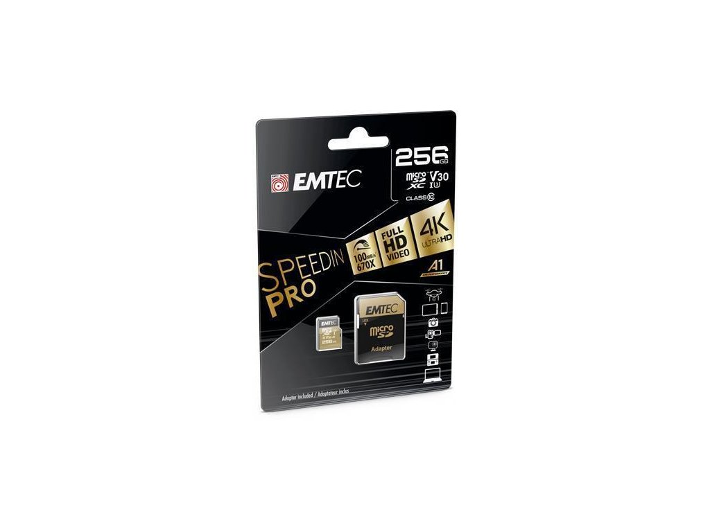 Paměťová karta "SpeedIN", microSDXC, 256GB, UHS-I/U3/V30/A2, 100/95 MB/s, adaptér, EMTEC ECMSDM256GX