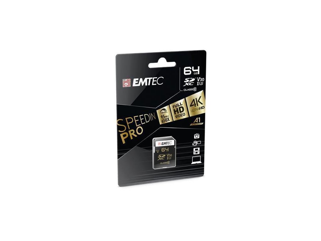 Paměťová karta "SpeedIN", SDXC, 64GB, UHS-I/U3/V30, 95/85 MB/s, EMTEC ECMSD64GXC10SP