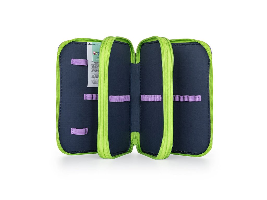 Školní penál třípatrový bez náplně. Penál obsahuje 40 gumových poutek pro uložení všech psacích potřeb a drobností potřebných k výuce. Penál má pevný zip s velkými taháčky pro snadnou manipulaci. Jedno patro je opatřeno průhlednou přihrádkou pro týdenní rozvrh.Doplňkové parametry