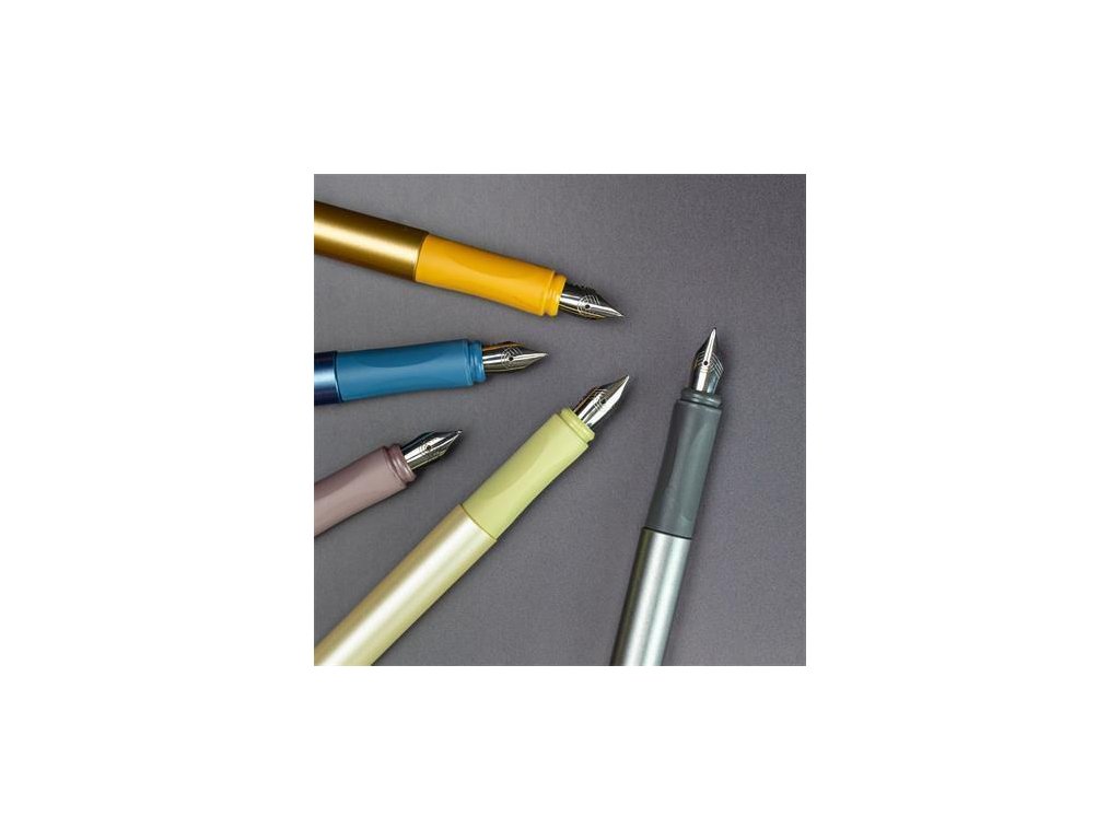 Elegantní plnicí pero s kovovým leskem a s ergonomicky pogumovaným úchopem pro psaní bez únavy.Plastové tělo pera s elegantním kovovým povrchem