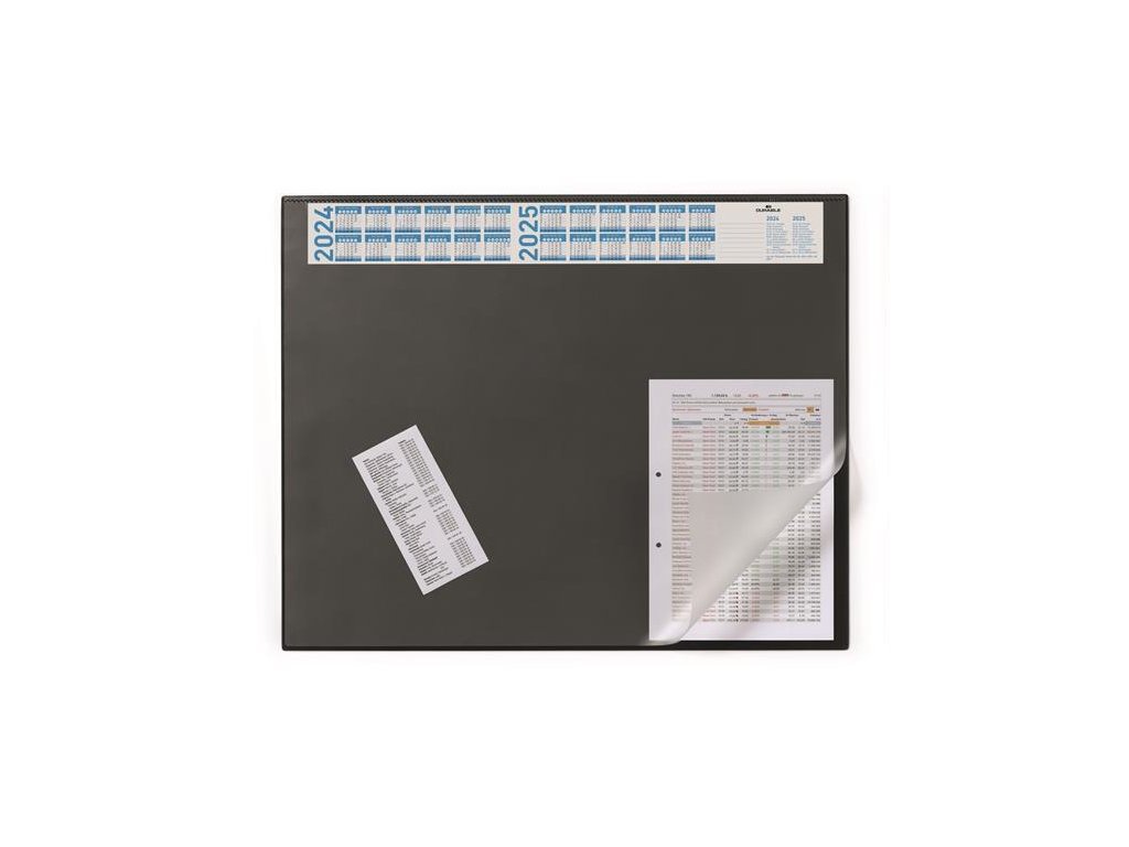 Podložka na stůl, černá, 65 x 52 cm, s ročním kalendářem, transparentní klopa, DURABLE 720401