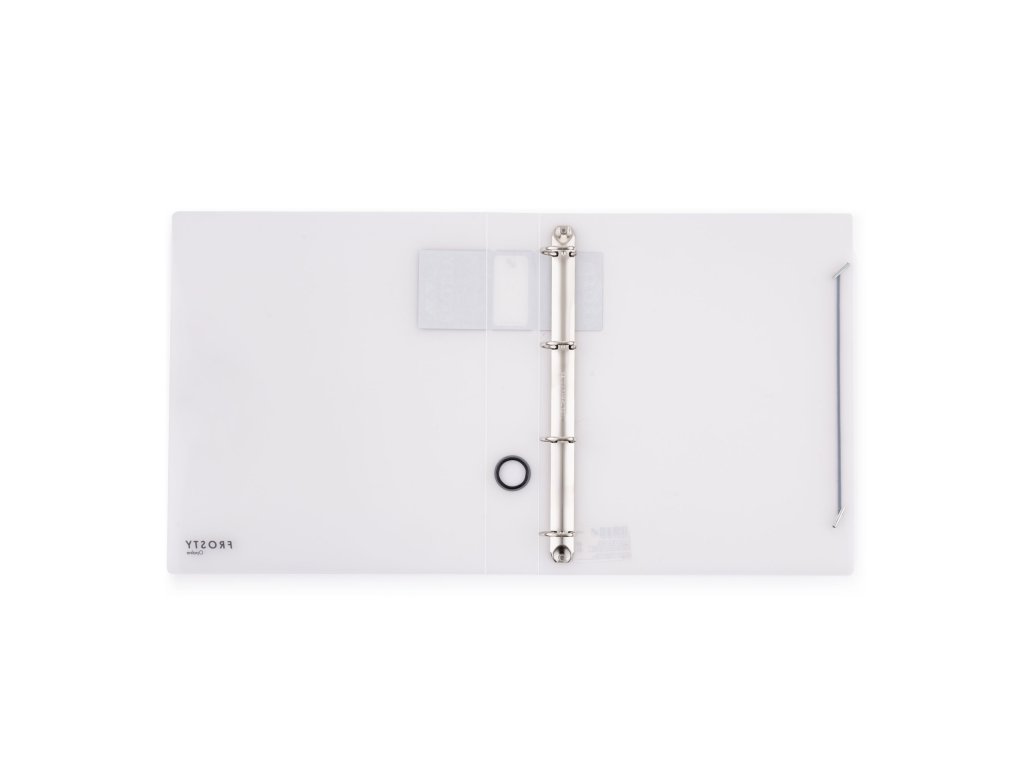 Kroužkový pořadač z extra silného polypropylenu, 4kroužková mechanika, hřbet šířky 4,5 cm. Prstokroužek ve hřbetu.
