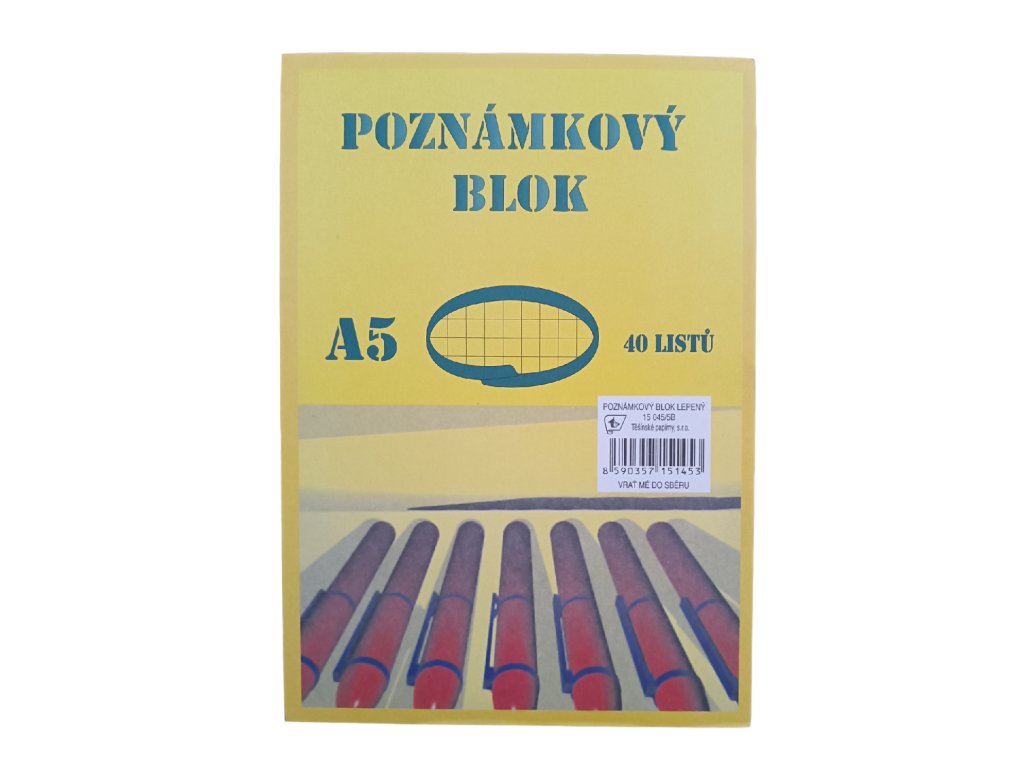 Poznámkový blok A5, lepený, čtvereček, 40 listů