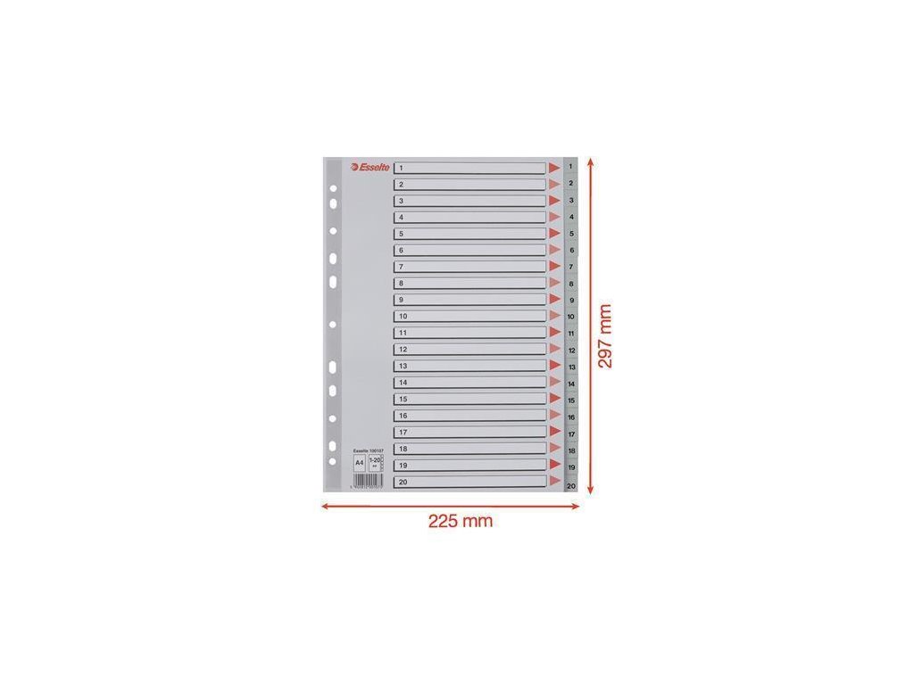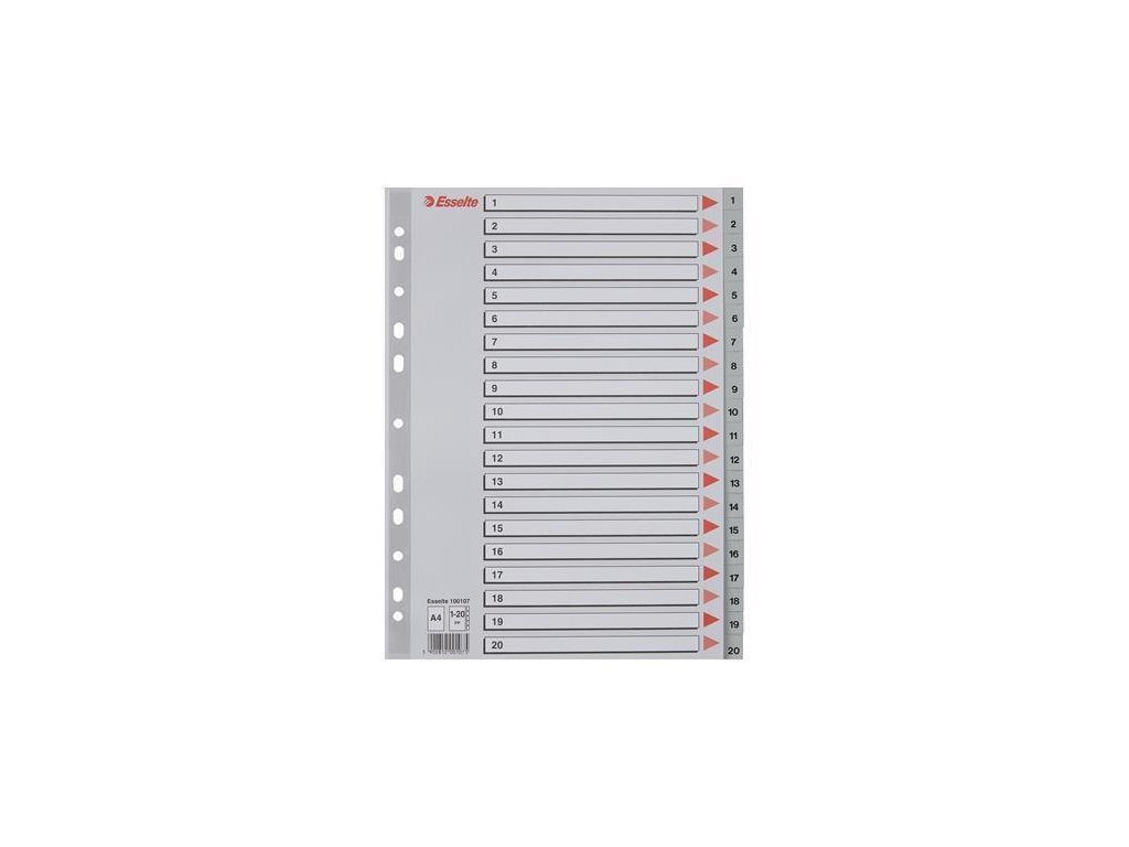 Rejstříky, šedá, A4, plast, 1-20, ESSELTE