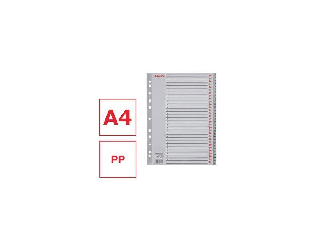 Rejstříky, šedá, A4, plast, 1-31, ESSELTE