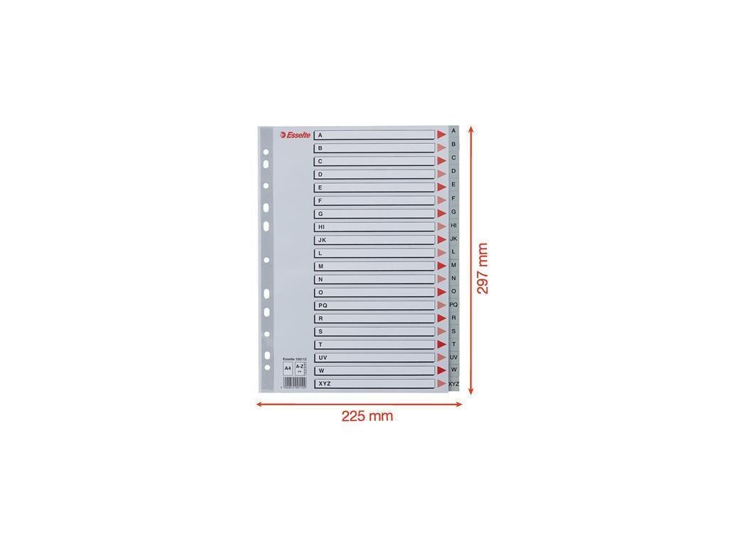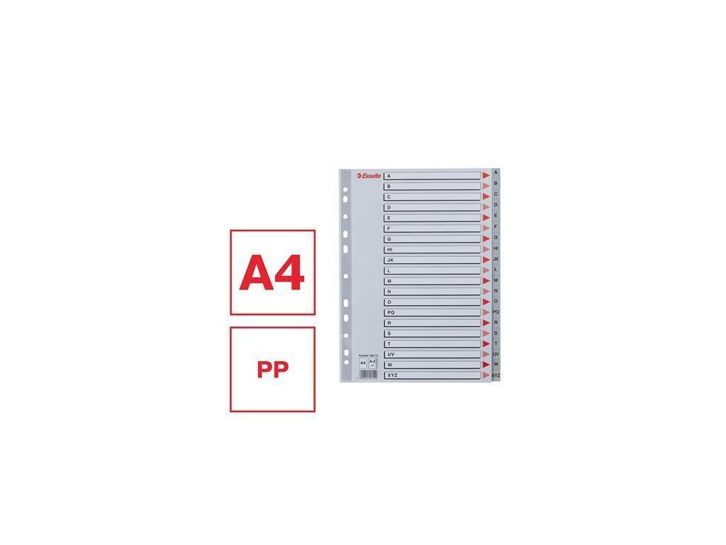 Rejstříky, šedá, A4, plast, A-Z, ESSELTE