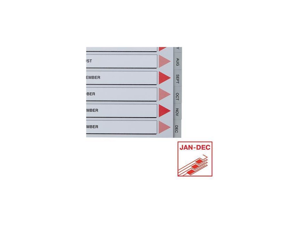 Rejstříky pro číselné roztřídění dokumentů v pořadačích či deskách do formátu A4 s popisovatelnou titulní stranou.Zesílená multiperforace plastovým proužkem na titulní straně. Dělicí listy se štítky JAN - DEC pro rychlou orientaci v obsahu.