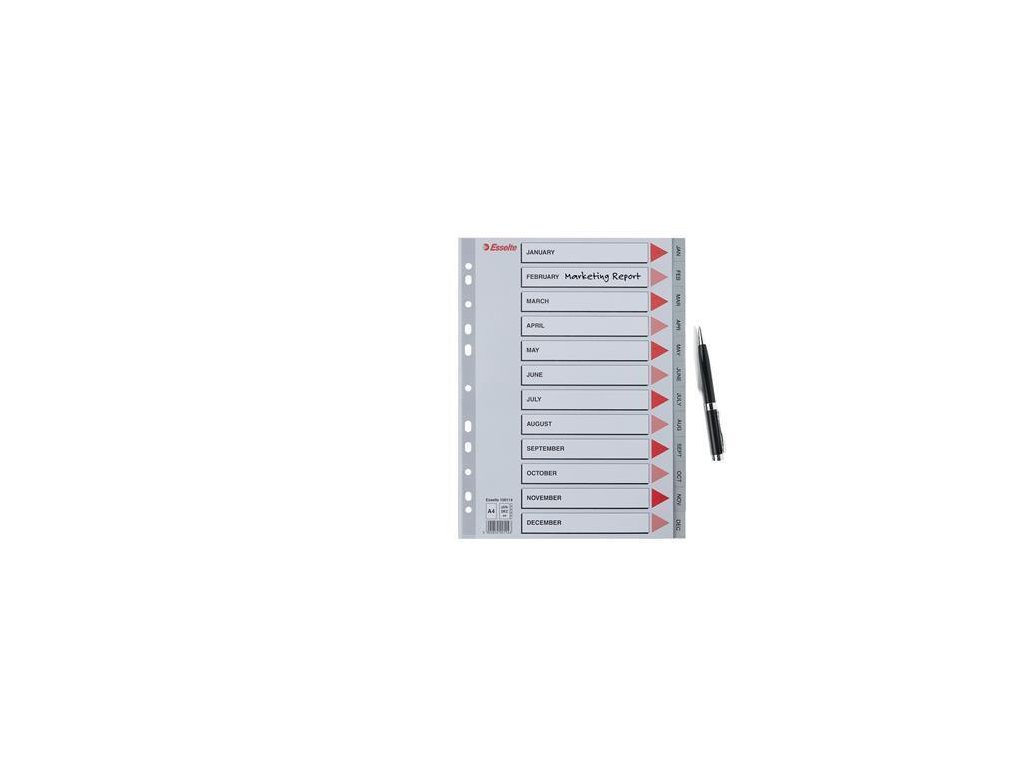 Rejstříky, šedá, A4, plast, Jan-Dec, ESSELTE