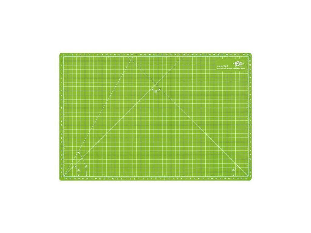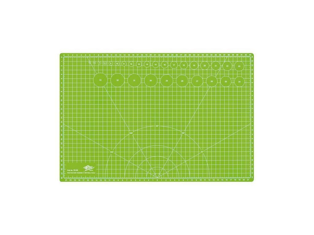 Robustní řezací podložka s potiskem z obou stran.Vlastnosti: potisk mřížky cm, úhlů a kruhy; třívrstvá konstrukce se speciálním jádrem a samozavíracím povrchem; napomáhá k přesným řezům; chrání ostrost čepele nožů; vhodné také jako psací podložka;