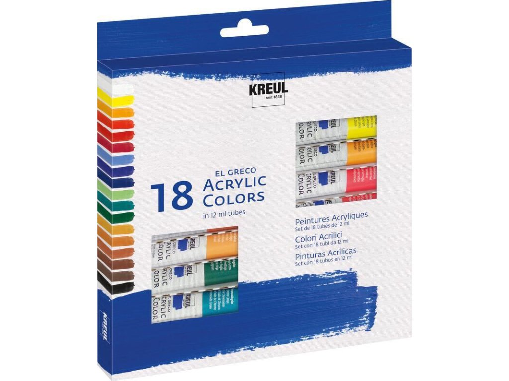 Sada Akrylová barva "EL GRECO", 18 barev, 12 ml v tubě, KREUL