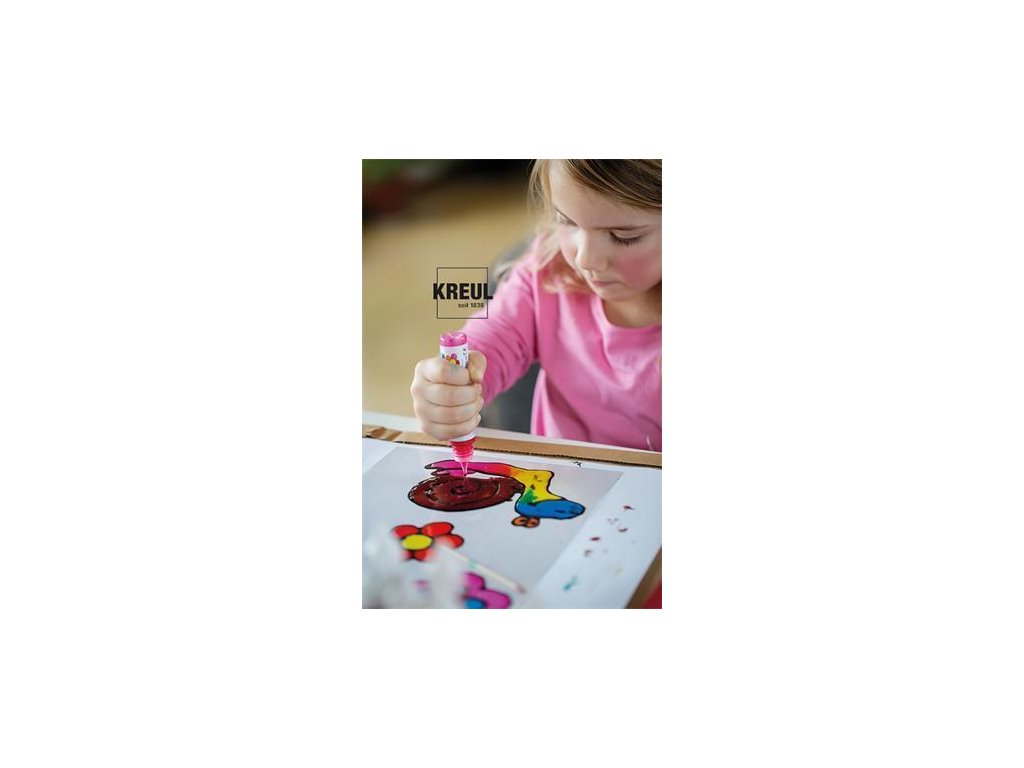 Barvy jsou v bezpečném a praktickém balení a každá šmouha lze vyprat.