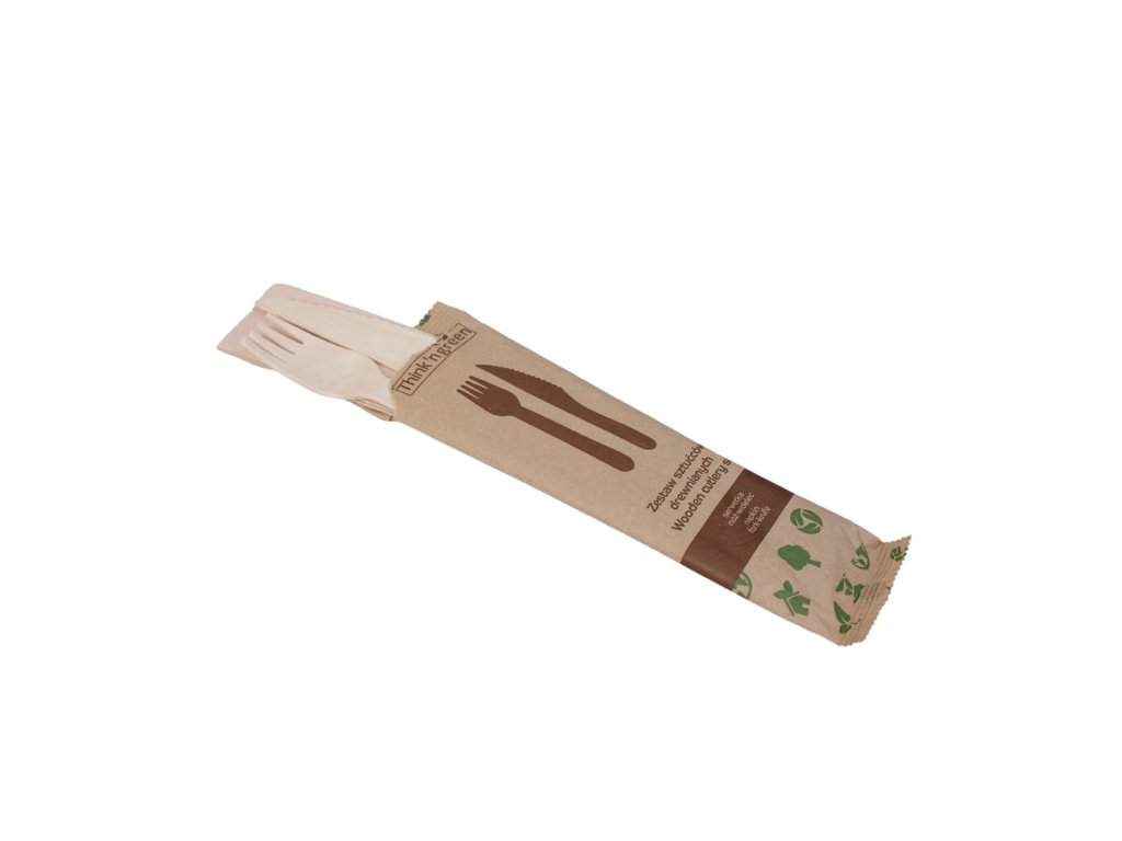 Sada dřevěných příborů ECO nůž+vidlička+ubrousek 300ks