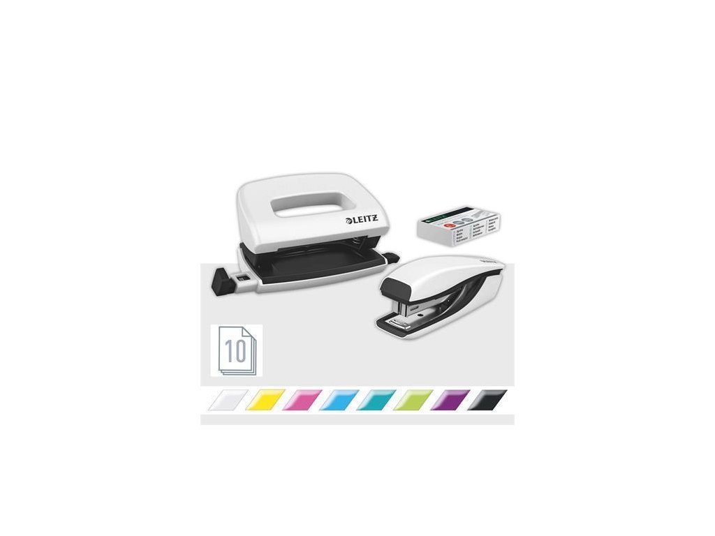 Sada sešívačky s děrovačkou "Wow Mini", bílá, mini, 10 listů, kov, LEITZ
