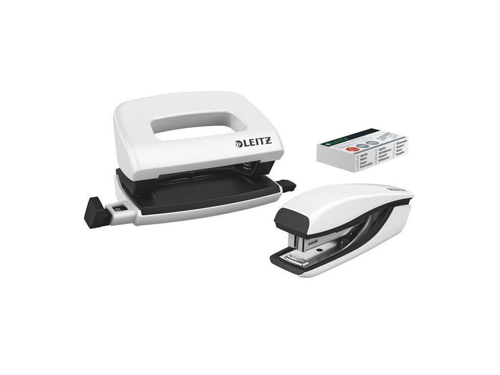 Sada sešívačky s děrovačkou v menších kompaktních rozměrech. Ideální pro použití v kanceláři i domácnosti.Praktický ergonomický tvar pro využití v kanceláři, doma nebo ve škole.