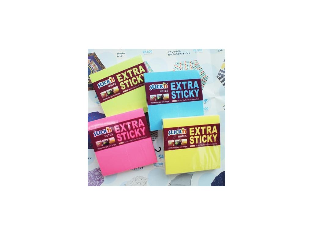 Samolepicí bloček "Extra Sticky",neonově žlutá barva, 76x76 mm, 90 listů, STICK N 21670