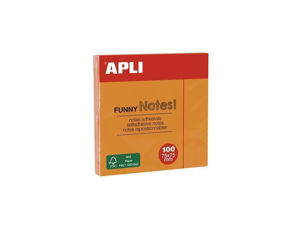 Samolepicí bloček "FUNNY", oranžová, 75 x 75 mm, 100 listů, APLI 11900