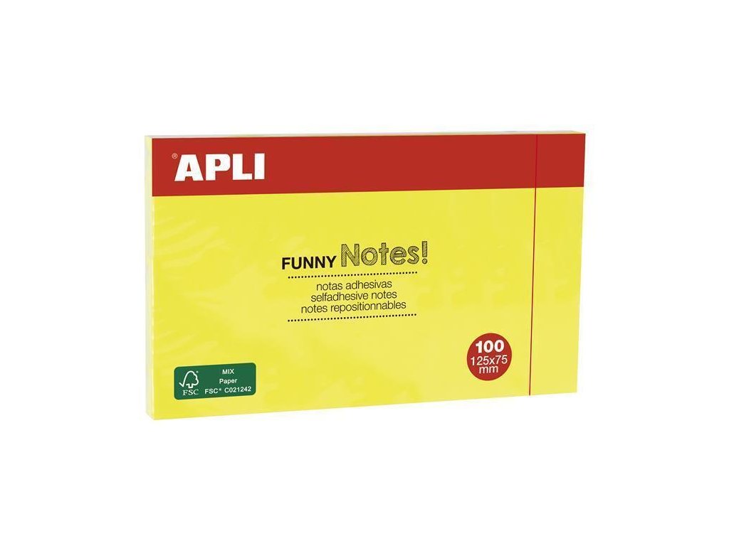 Samolepicí bloček "FUNNY", žlutá, 75 x 125 mm, 100 listů, APLI 15002