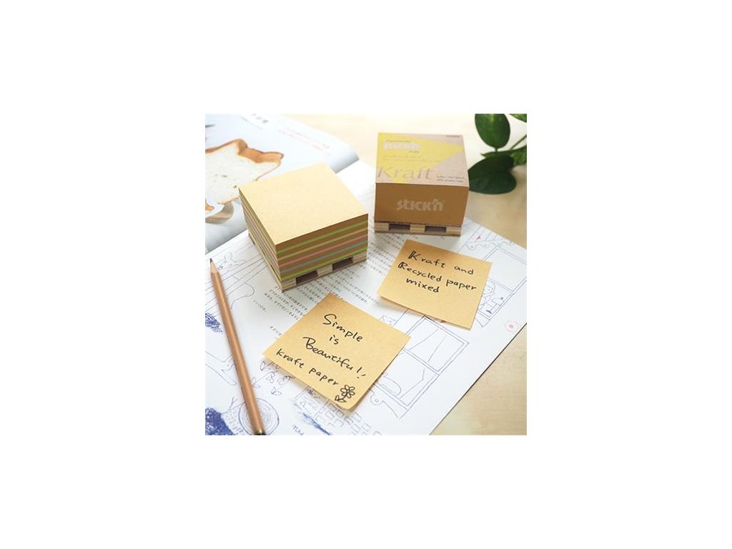 Samolepicí bloček "Kraft Cube", hnědá barva, 76x76 mm, 400 listů, mini paleta STICK N 21816