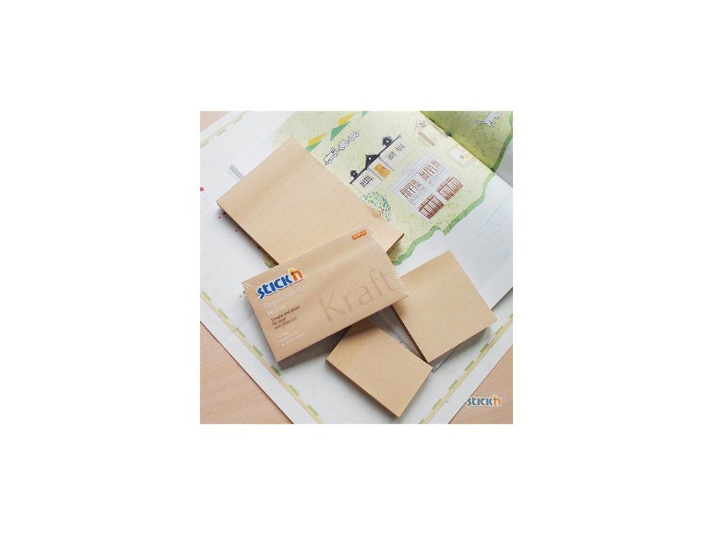 Samolepící poznámkový blok vyrobený z přírodního hnědého papíru pro milovníky přírody.Materiál je ideální nejen pro poznámky, ale také kreativní tvoření.