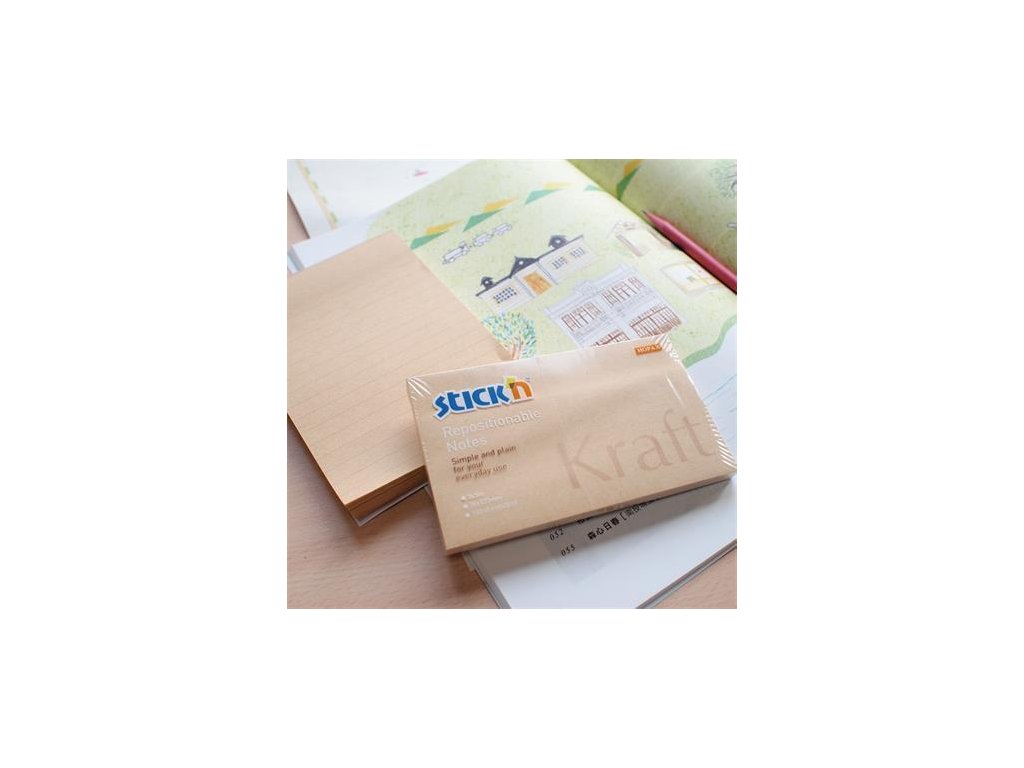 Samolepicí bloček "Kraft Notes", hnědá barva, 76x127 mm, 100 listů, STICK N 21640