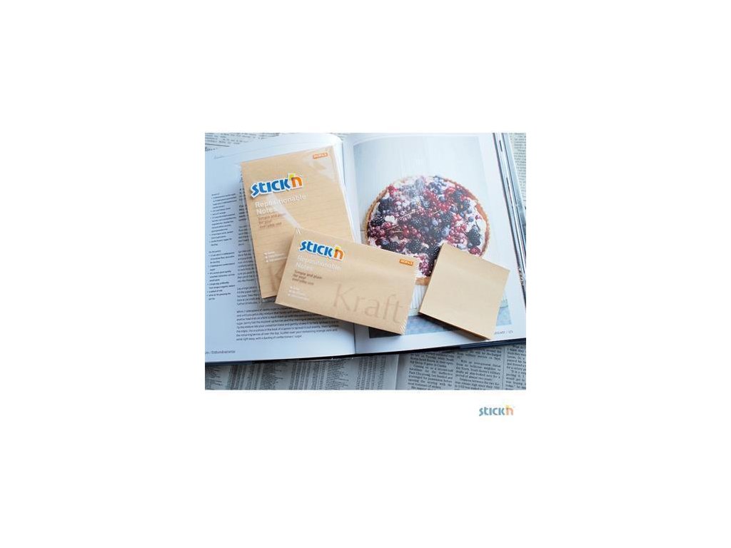 Samolepicí bloček "Kraft Notes", linkovaný, hnědá barva, 150x101 mm, 100 listů, STICK N 21641
