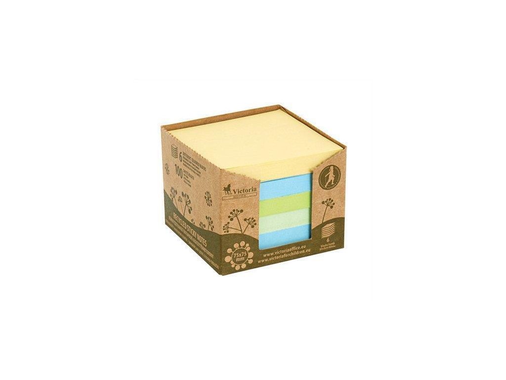 Samolepicí bloček, mix barev, 75 x 75 mm, 6x 100 listů, recyklovaný, VICTORIA