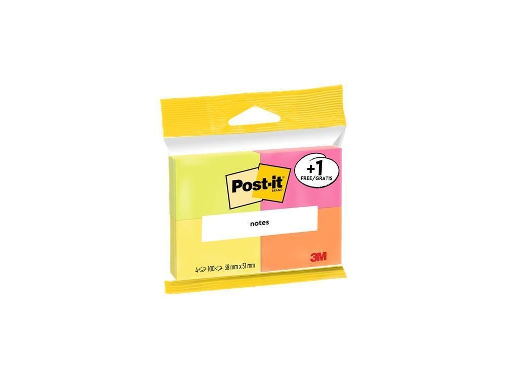 Samolepicí bloček, mix neonových barev, 38 x 51 mm, 4x 100 listů, blistr, 3M POSTIT 7100172321