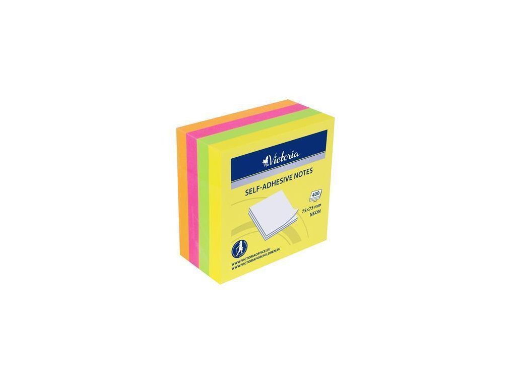 Samolepicí bloček, mix neonových barev, 75 x 75 mm, 4x 100 listů, VICTORIA