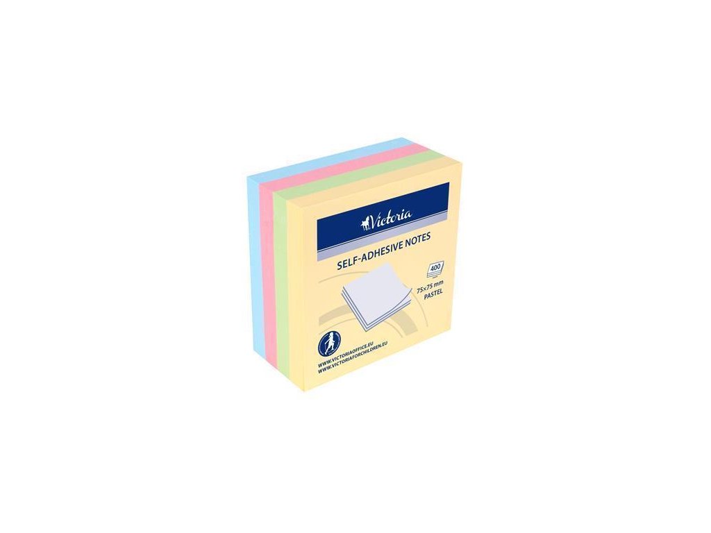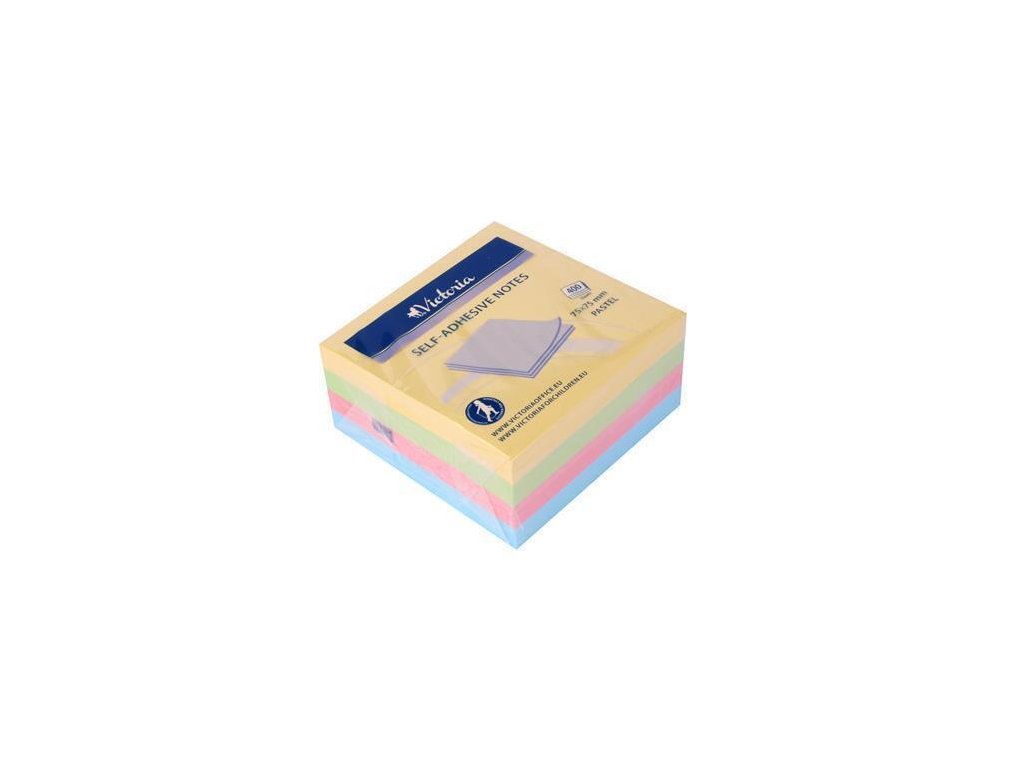 Samolepicí bloček, mix pastelových barev, 75 x 75 mm, 4x 100 listů, VICTORIA