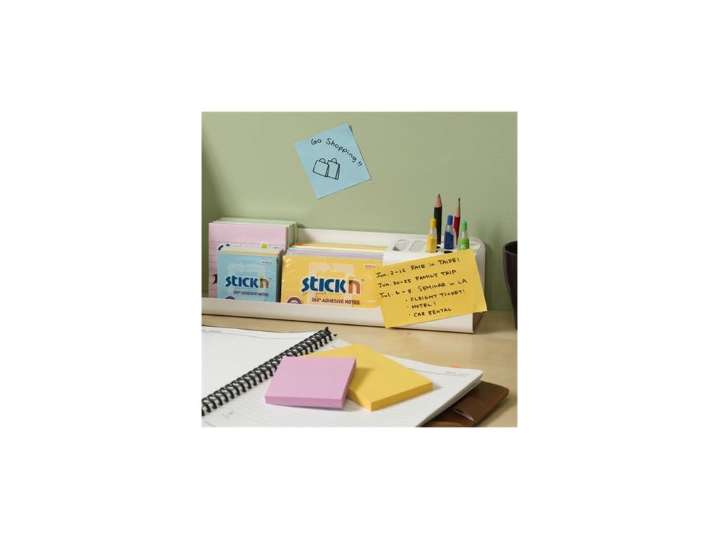 Samolepící poznámkový blok STICK'N je vyroben unikátní patentovanou technologií 360°s patentovanou technologií 360°, která zajišťuje perfektní přilnavost lístků ve všech směrech