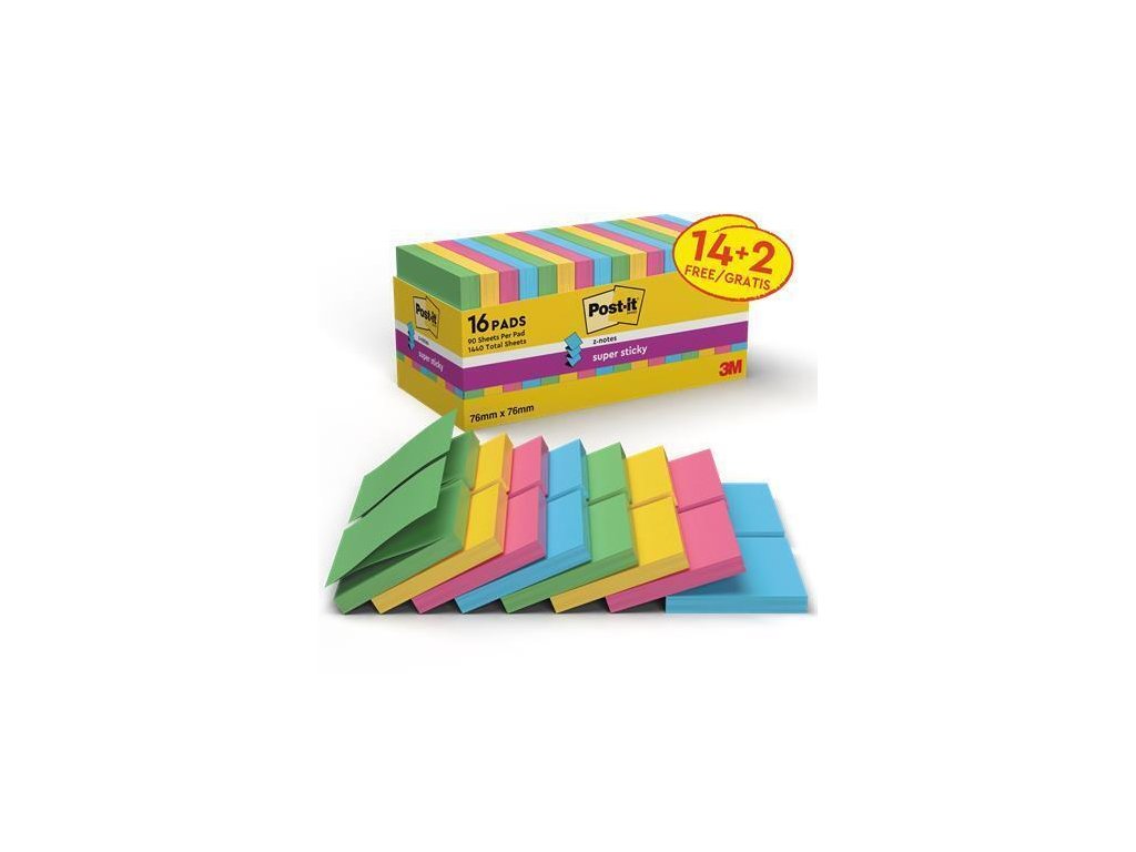 Ve srovnání s originálními bločky Post-it má Post-it Super Sticky dvakrát silnější přilnavost. Ideální také pro svislé a drsné povrchy. Vícekrát přemístitelné, po odstranění nezanechá stopy.Po vytažení jednoho listu je hned další připraven k použití.