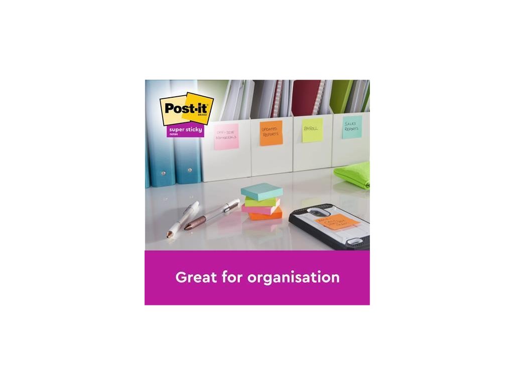 Ve srovnání s originálními bločky Post-it má Post-it Super Sticky dvakrát silnější přilnavost. Ideální také pro svislé a drsné povrchy. Vícekrát přemístitelné, po odstranění nezanechá stopy.Po vytažení jednoho listu je hned další připraven k použití.
