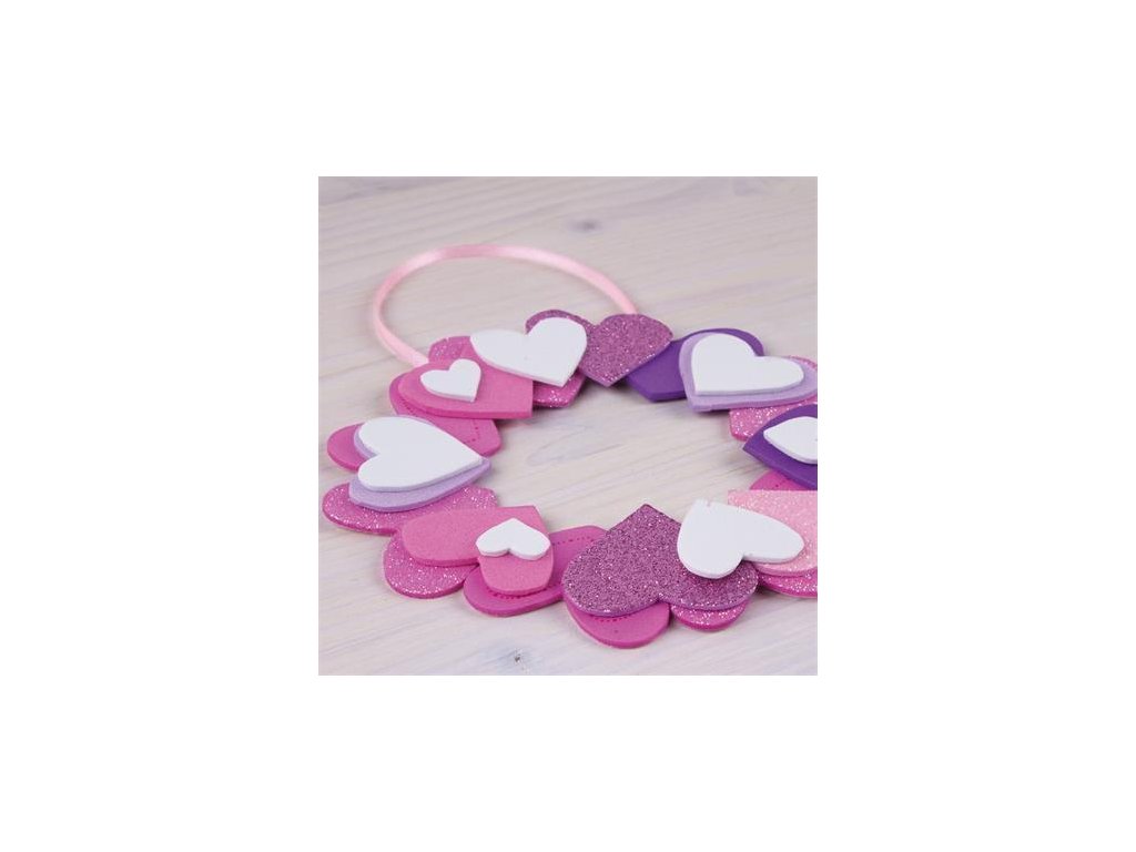 Samolepicí pěnovka EVA ve tvaru srdce, se třpytkami. S permanentním lepidlem na zadní straně. Ideální pro použití doma nebo ve škole při ručních pracích, při výrobě albumů, blahopřání nebo masek, korunek a kostýmů.Měkký a bezpečný materiál.