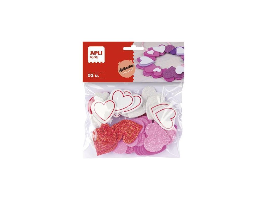 Samolepicí pěnovka "Eva Sheets", mix barev, se třpytkami, tvar srdce, 52 ks, APLI 13283