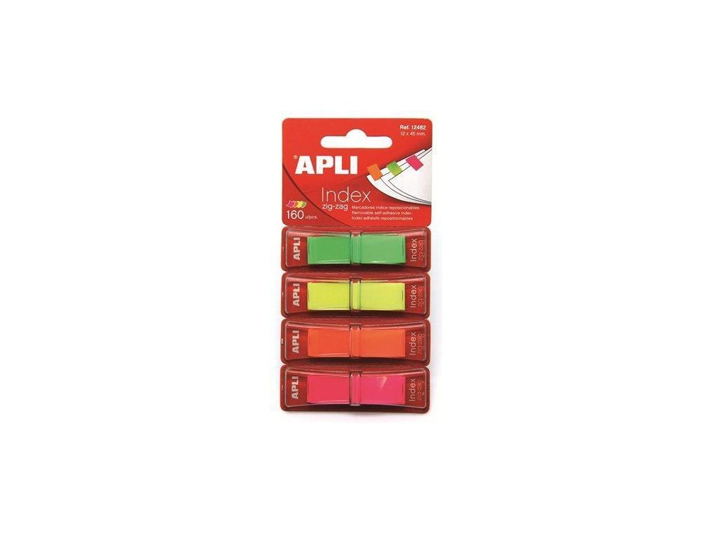 Samolepicí záložky, 4 fluorescentní barvy, 160 ks, APLI