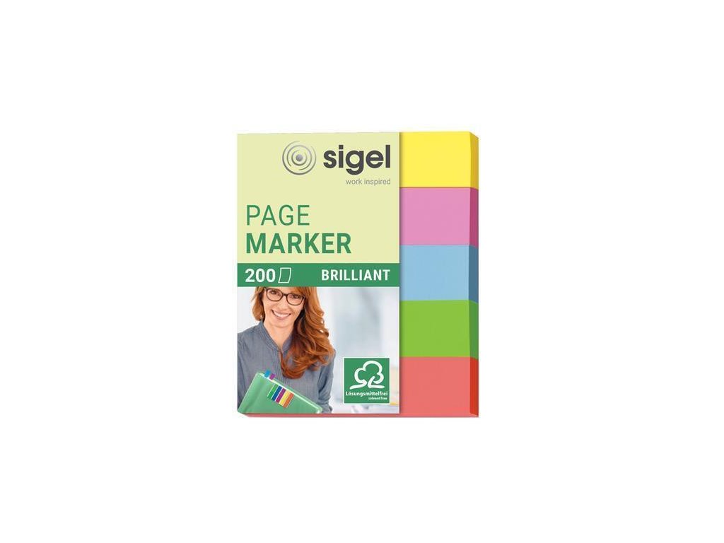 Samolepicí záložky, 5x40 lístků, 12x50 mm, SIGEL "Brillant", mix barev