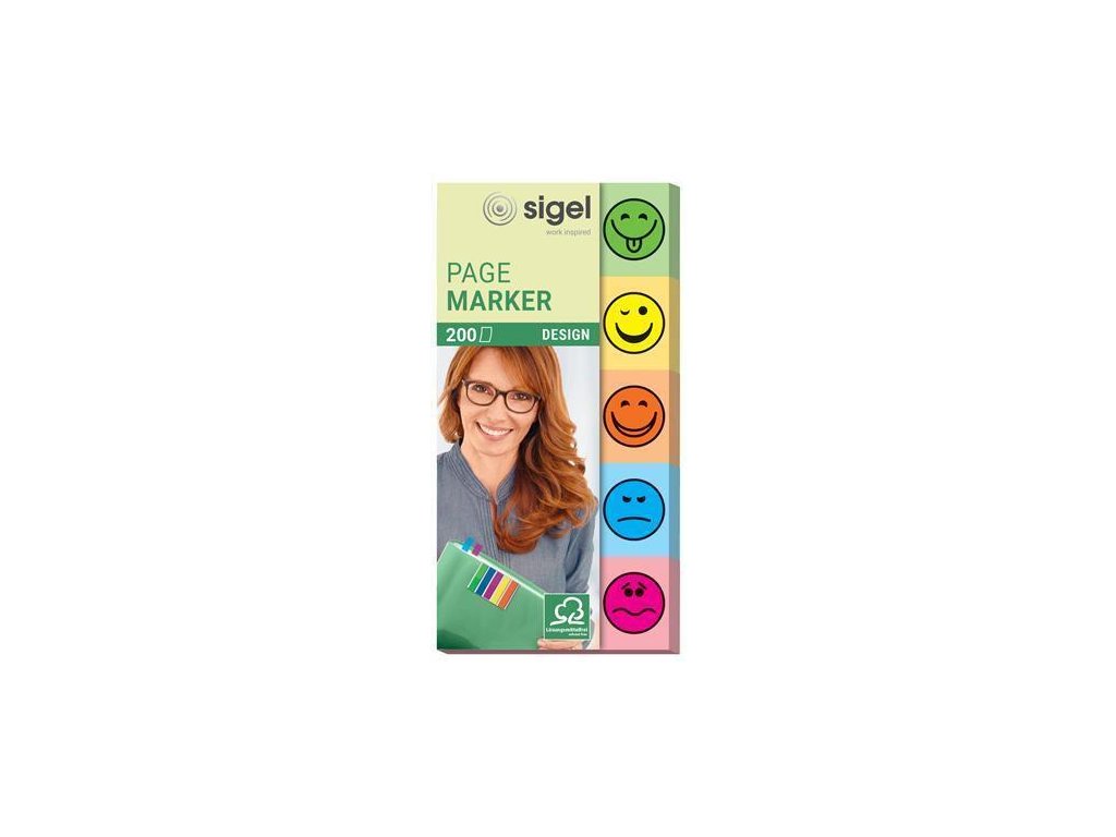 Samolepicí záložky, 5x40 lístků, 20x50 mm, SIGEL, "Smile", mix barev