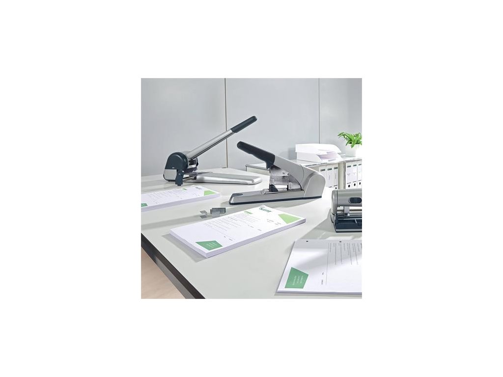 Celokovová, velkokapacitní sešívačka pro standardní i velké zatížení.Funkce plochého sešívání šetří místo v pořadači až o 30 %.