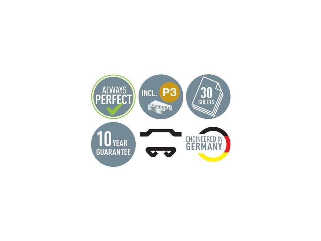 Pevná a spolehlivá sešívačka až pro 30 listů papíru (80 g/m2)Patentovaná sešívací DIT technologie (Direct Impact Technology) zaručuje vždy snadné a přesné sešití