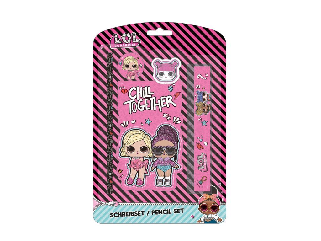 Sada školních pomůcek s motivem LOL Surprise obsahuje tužku, tvarovanou gumu, krabičku na ořezávátko, pravítko a tvarovaný poznámkový blok.Doplňkové parametry