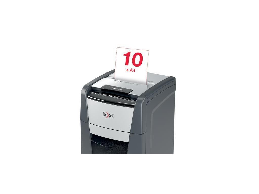 Vysoce výkonný skartovač Optimum AutoFeed+ 300 Pro P4 vhodný pro domácí a kancelářské použitíSkartuje také bankovní karty, kancelářské sponky a drátky sešívaček
