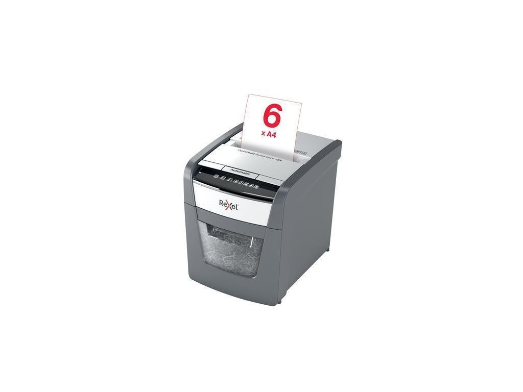 Vysoce výkonný skartovač Optimum AutoFeed+ 50 Pro P4 vhodný pro domácí a kancelářské použitíSkartuje také bankovní karty, kancelářské sponky a drátky sešívaček
