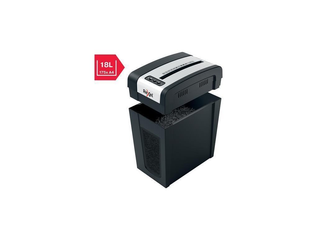 Objem koše 18 l (175 listů A4) se snímací hlavou skartovačky. Průhledné okénko koše pro kontrolu naplnění.
