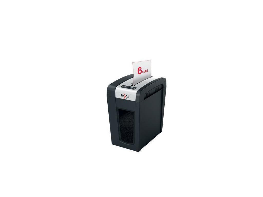 Řada skartovaček papíru Secure od firmy Rexel je ideální pro domácí likvidaci vašich osobních dokumentů a citlivých informací. Skartovačka Secure MC6-SL skartuje až 6 listů papíru A4 (80 g/m2), vkládaných najednou do ručního vstupního otvoru, na dílky s mikro řezem P-5 (2 x 15 mm). Tato skartovačka s mikro řezem je dokonalá pro použití jako domácí skartovačka nebo v domácí kanceláři díky svým kompaktním rozměrům a štíhlé konstrukci. Je to také ideální skartovačka pro domácí kancelář, která se pohodlně vejde pod stůl a pracuje s nízkou hlučností Whisper-Shred™. Je navržena na lehký až střední provoz s košem o objemu 18 l pro méně časté vyprazdňování.Skartuje až 6 listů A4 (80 g/m2) najednou