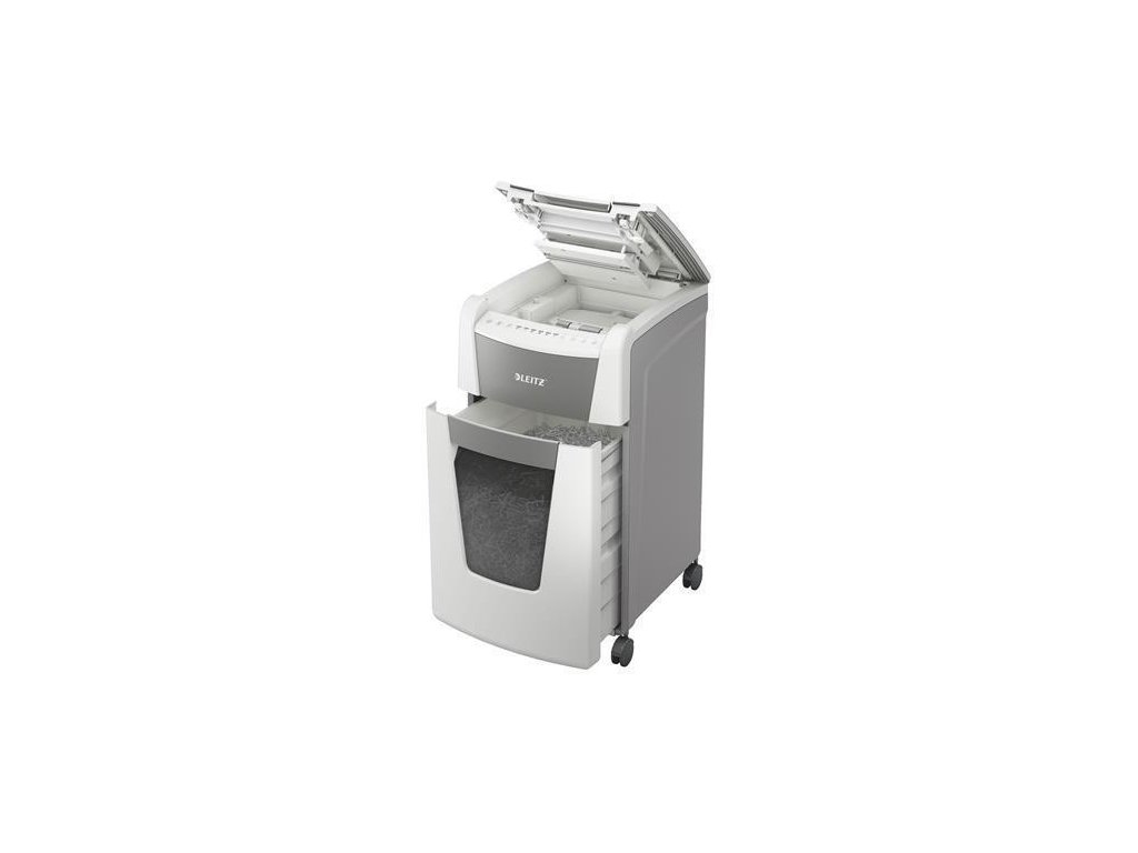 Funkce: technologie proti zaseknutí papíru (automaticky se zastaví a spustí zpětný chod); velkokapacitní odpadní nádoba; skartuje papír, svorky, sponky na papír; dotykové ovládání; mimořádně+ tichý provoz (při dodržování údržby pomocí olejových listů LEITZ).